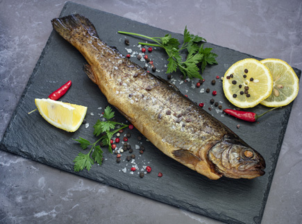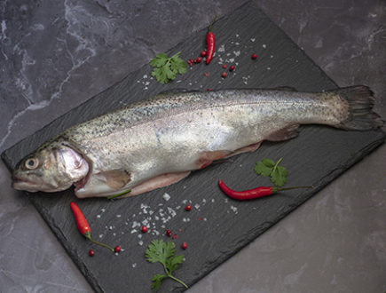 Salmon trout range from the Barents Sea to northern Spain, but isolated populations also exist in the Mediterranean. A migratory fish that migrates to rivers to spawn. Most of the salmon trout offered on the market come from Scandinavian farms. The colour of its meat is very similar to its close relative, salmon, but according to many, it is tastier. As far as kitchen technology is concerned, it can be baked whole in the oven or steamed, but it can also be used in all the recipes that have already been well-proven with salmon.
