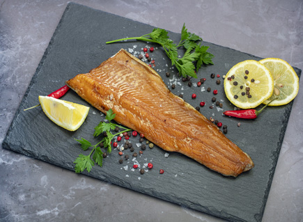Trout is a classic fish species that is also used for smoking as well. Its taste and size make it suitable for marinating and smoking either as a fillet or in a whole. After marinating for days in our carefully developed marinade, we smoke it using real beech wood shavings, thus achieving the unique and extraordinary taste and golden-brown colour.
